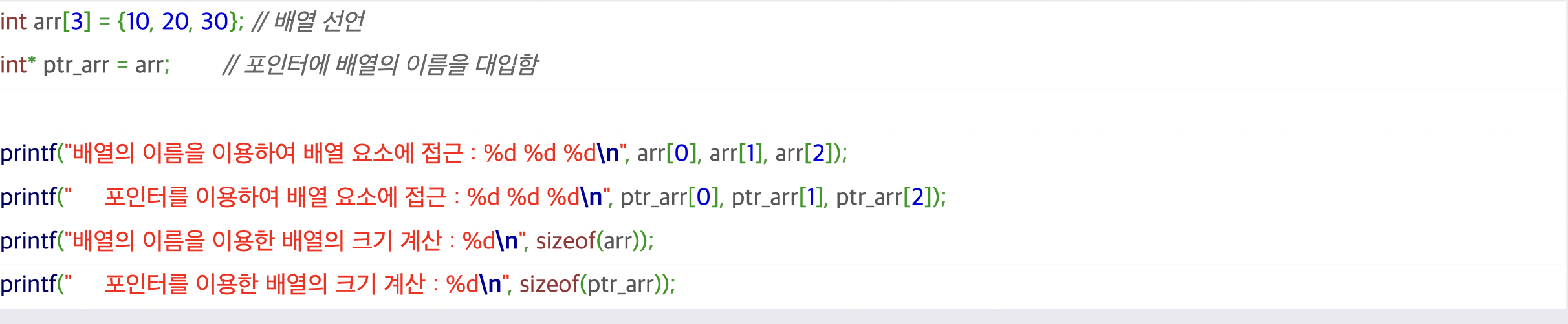 In this example, arr[0], arr[1], arr[2] will be same as ptr_arr[0], ptr_arr[1], ptr_arr[2], which is 10, 20, 30. The ptr_arr's value is same as arr, which we can see that the array acts as a pointer, as the address value is needed to get value by using the asterisk. So the pointer and array name can replace each other. But for the size, while the arr gives 12, the ptr_arr gives 8 since sizeof(ptr_arr) just gives the size of the pointer itself.