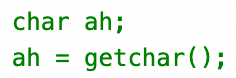But in this example, if we input ab, it would use ab, because this is a buffer, which temporarily recorded information. So if we input ab, the first putchar() would print 'a', then for the second putchar(), it would take out the temporarily recorded information of char ah and print the character 'b'.